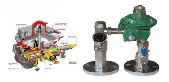 RC70 & RC100 系列调压器为直接作用式二 级平衡调压器。内置过滤放散阀超压和低压切 断保护装置。具有体积小、易于安装、压力稳 定、反应迅速等特点。