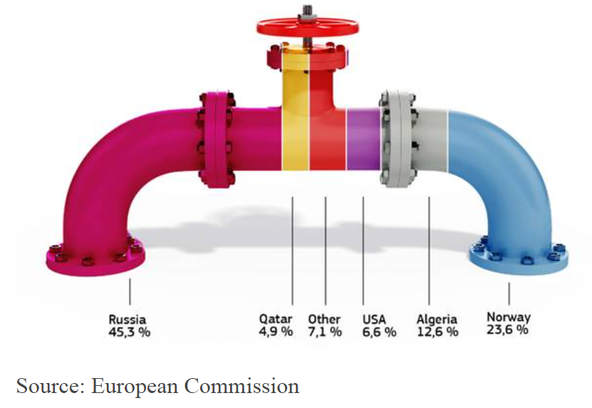 想要脱离对俄依赖并不容易,欧盟计划从两个方面进行。一是寻求天然气供应的多元化,并在供暖和发电中替代天然气,以减少天然气的使用。在2022年底前,欧盟希望对俄罗斯天然气的需求能减少三分之二。
