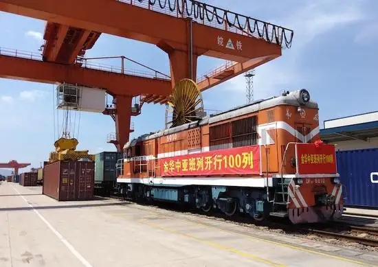 6月19日上午10时,满载100个标箱工程材料的X9216次中欧班列经海关监管后从浙江省铁路金华南站鸣笛启程,驶往乌兹别克斯坦首都塔什干,标志着中欧班列(金华)中亚最大燃气电站EPC项目设备专列成功开行。