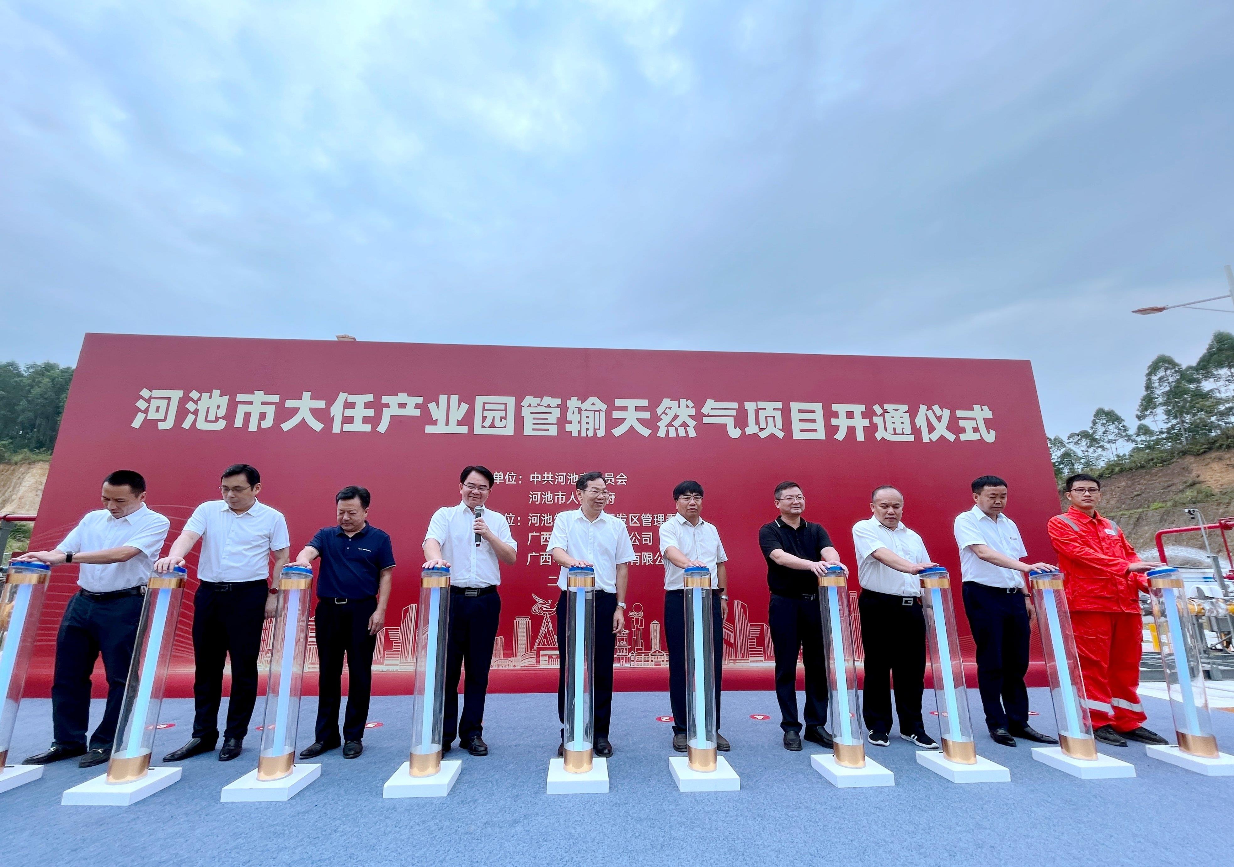 9月13日上午,河池市大任产业园举行管输天然气通气仪式。市委副书记、河池经开区(市工业园区)党工委书记周光华宣布天然气正式通气。