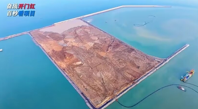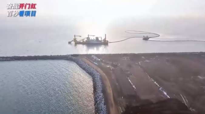 江苏华电赣榆LNG接收站项目工程,目前正在进行码头吹填。从航拍图可以看到,陆域框架基本形成。
